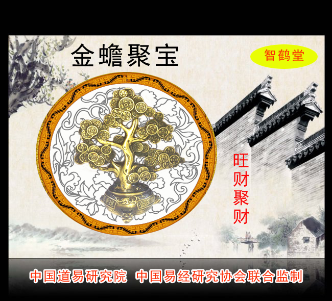 中国道易研究院选用的金蟾聚宝摇钱树,是金蟾再加上聚宝盆的聚集作用与摇钱树的勤劳致富的含义。从而达到化解伤财并可以旺财的作用。